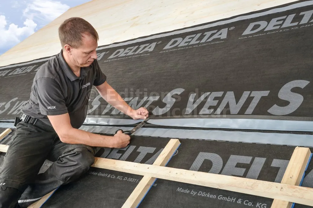 - Durée de la phase chantierécran de sous-toiture : 8 jours, hors conditions climatiques exceptionnelles. Dans le cas de durées d'exposition supérieures à 8 jours, procéder au bâchage avec DELTA®-PLAN 2000