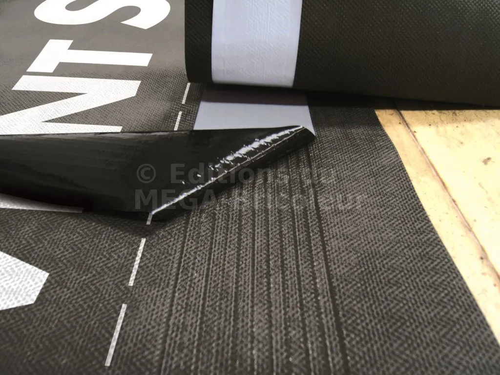 - MatériauÉcran de sous-toiture et pare-pluie tricouches PP composé de deux non-tissés en monofils continus désorientés, d'un film respirant avec deux bandes autocollantes intégrées.