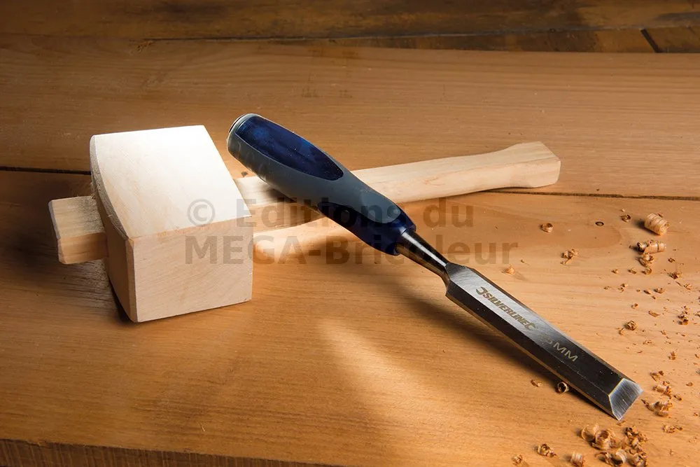 - Poignée avec tête de frappe : utilisation d’un petit marteau ou un maillet possible.