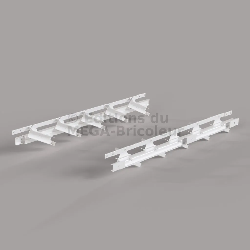 Les mécanismes constituent la base du SUNDIY. Ils permettent de couvrir une hauteur (ou profondeur) de 47,5cm, et jusqu’à une largeur de 100cm (conseillé) avec des lames en bois, ou 200cm avec des lames aluminium.