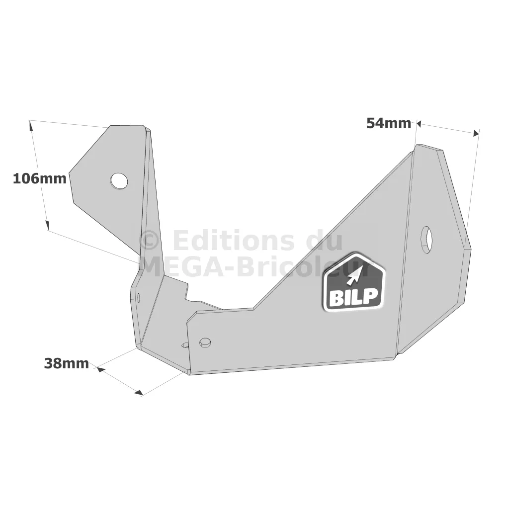 Ce sabot permet de reprendre les fermes dans les angles de maçonnerie à 90°. Il est disponible en largeur 38 mm ou pliable en largeur, au choix, entre 76 et 150 mm.