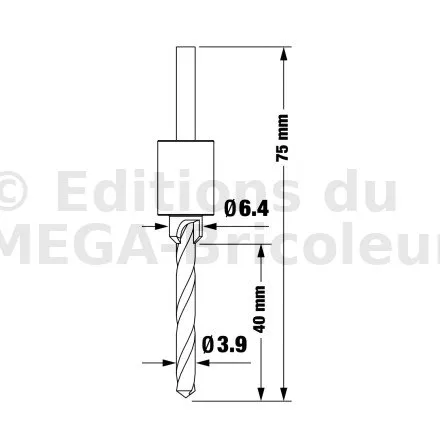 Foret aléseur - Diam. mèche : 3.9mm, Diam aléseur : 6.4mm - Réf. DBWOODDSPRO