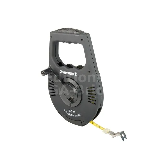 Mètre d’arpenteur à démultiplication, ruban en acier inoxydable 50m x 12mm - Réf. 250213