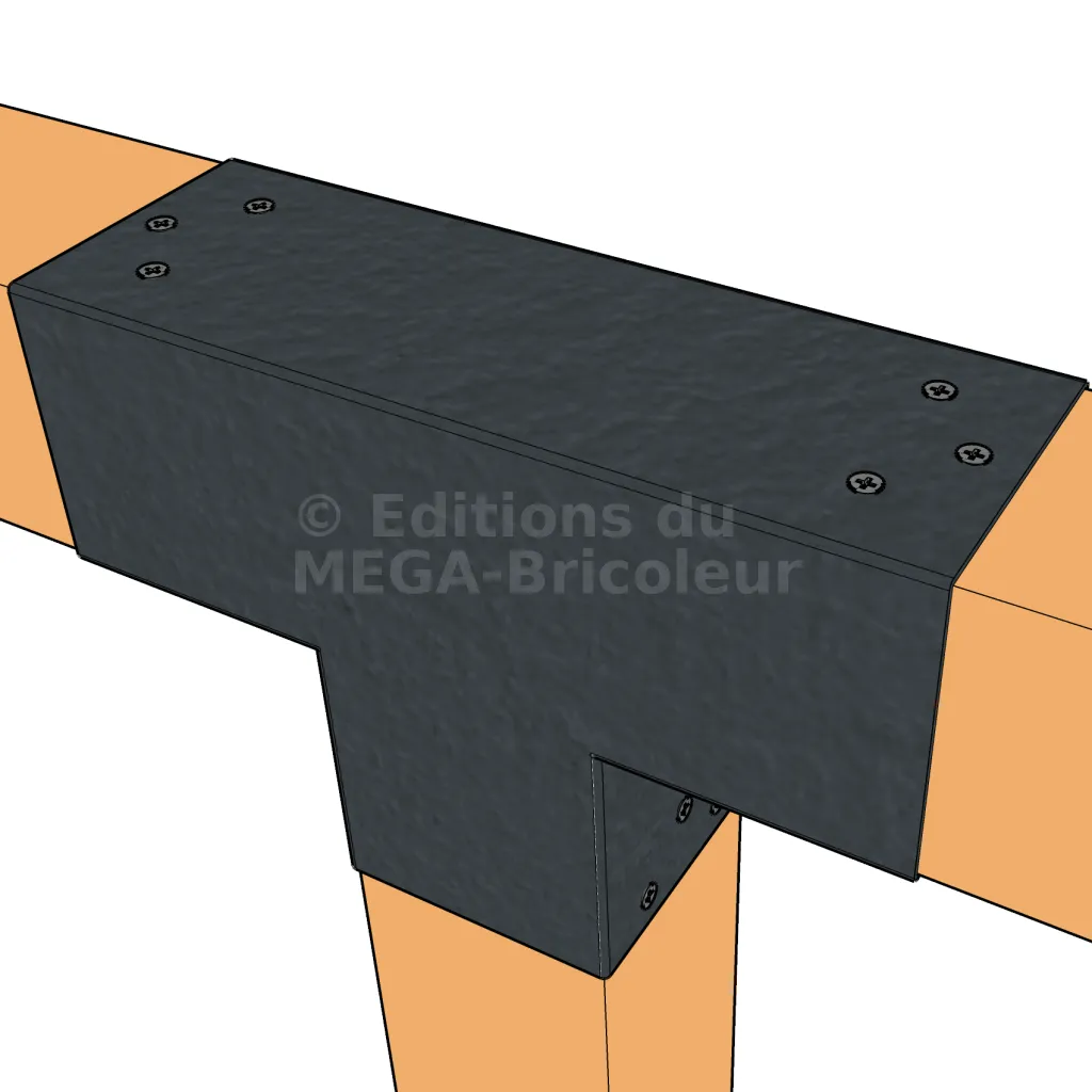Il sert à raccorder une poutre de 90x90mm perpendiculairement à une autre poutre de 90x90mm, SANS être soutenu par un poteau vertical.