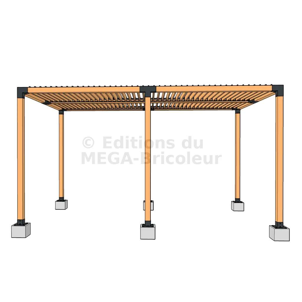 Il permet également la connexion d’une longue poutre de 90x90mm à un poteau intermédiaire de 90x90mm.
