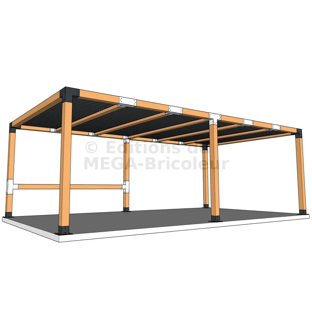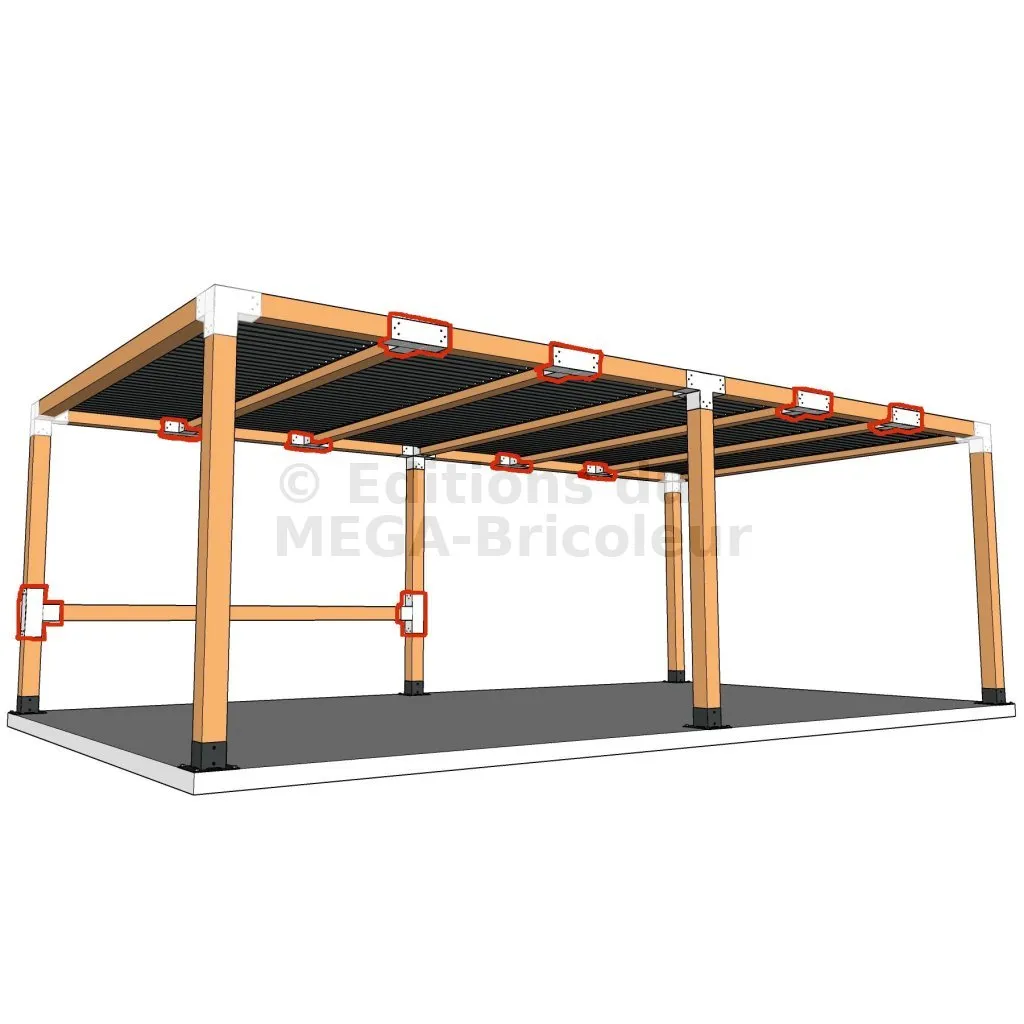 Il permet également la connexion d’une longue poutre de 120x120mm à un poteau intermédiaire de 120x120mm.