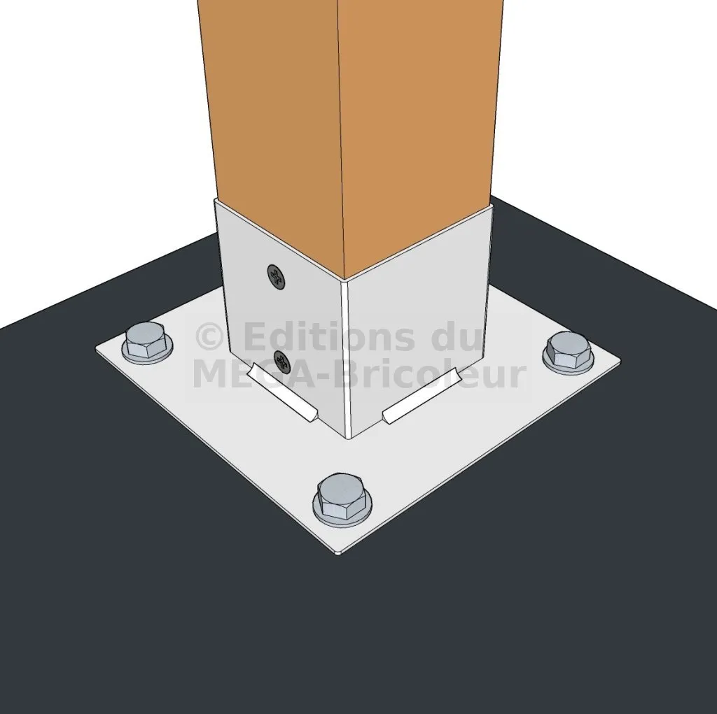 Il permet la fixation des poteaux sur une dalle ou un plot en béton.