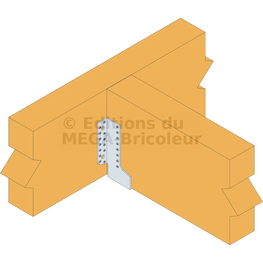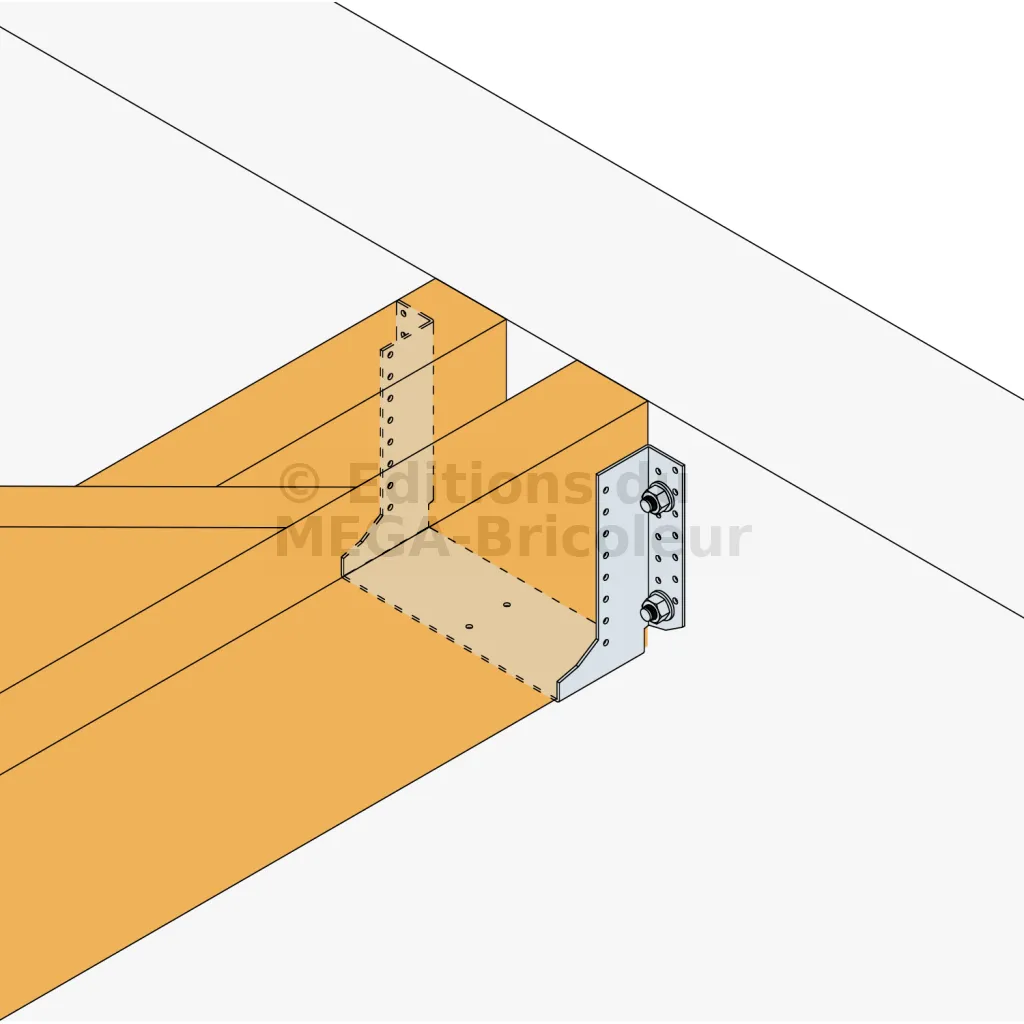 Pour ce modèle, des vis à bois ou des clous métalliques métalliques de petite ou moyenne taille suffisent généralement. Les clous torsadés peuvent également être utilisés pour une meilleure tenue. Ces fixations sont idéales pour des structures légères et doivent être dimensionnées selon la taille des sabots et la nature de la charge à supporter.