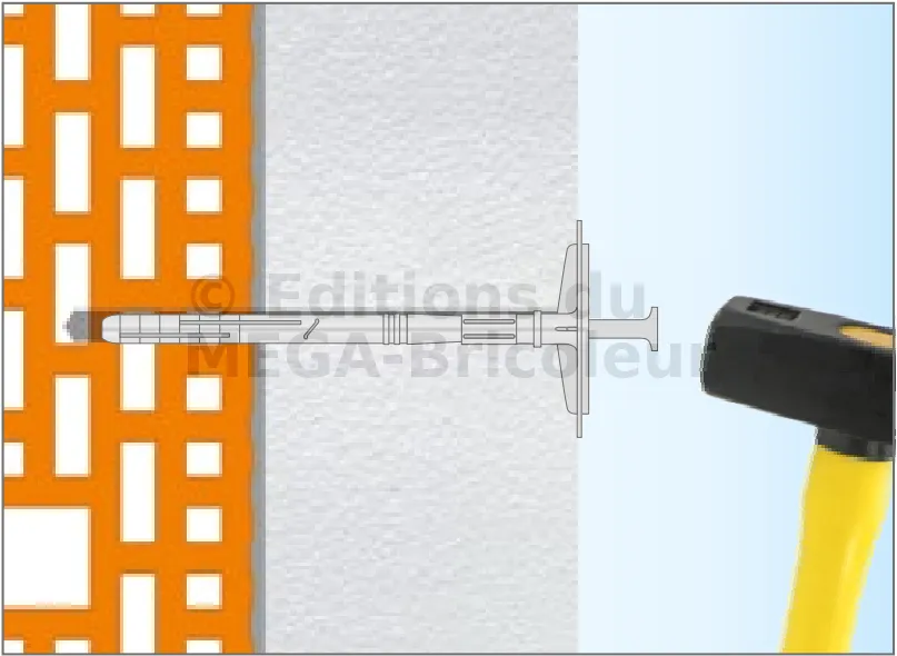 Cheville d’isolation à frapper avec clou en plastique, avec plaque de fixation coulissante - Réf. FIXPLUG08130(200)