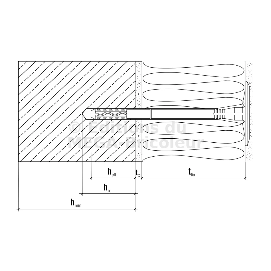 - Profondeur d’ancrage (hef)Support de type A, B, C, D : 30mm ; support de type E : 50mm