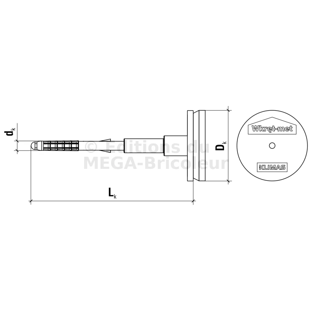 Cheville d’isolation à visser avec clou métal et rondelle d’appui télescopique - Diamètre 8mm - Réf. ECODRIVE-S-08410(100)