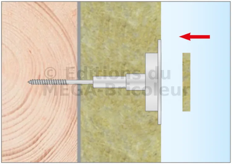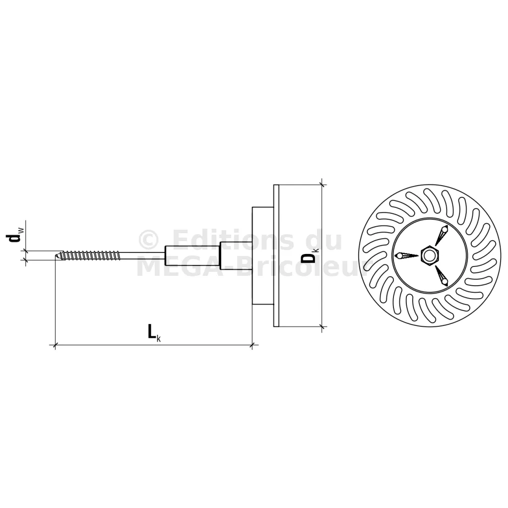 Cheville d’isolation à visser pour fixer la laine minérale sur le SUPPORT EN BOIS - diamètre 6mm - Réf. DRIVE-W-06140(50)