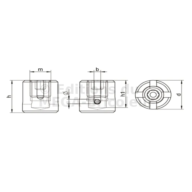 | Référence | Ø (mm) | d (mm) | h (mm) | b (mm) | m | h1 (mm) |
