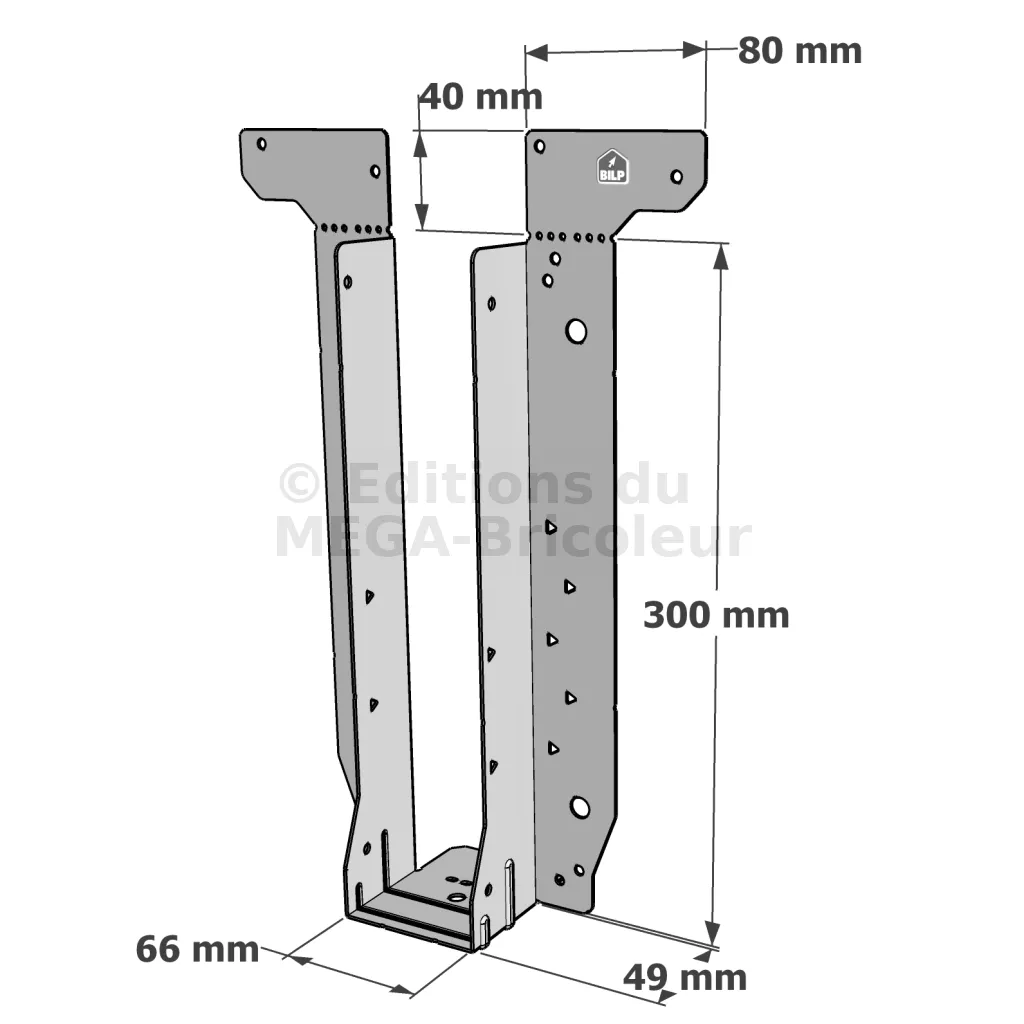 - Étrier fourni avec ses brides supérieures droites, pliables sur chantier afin de s’adapter à toutes les hauteurs de solives,