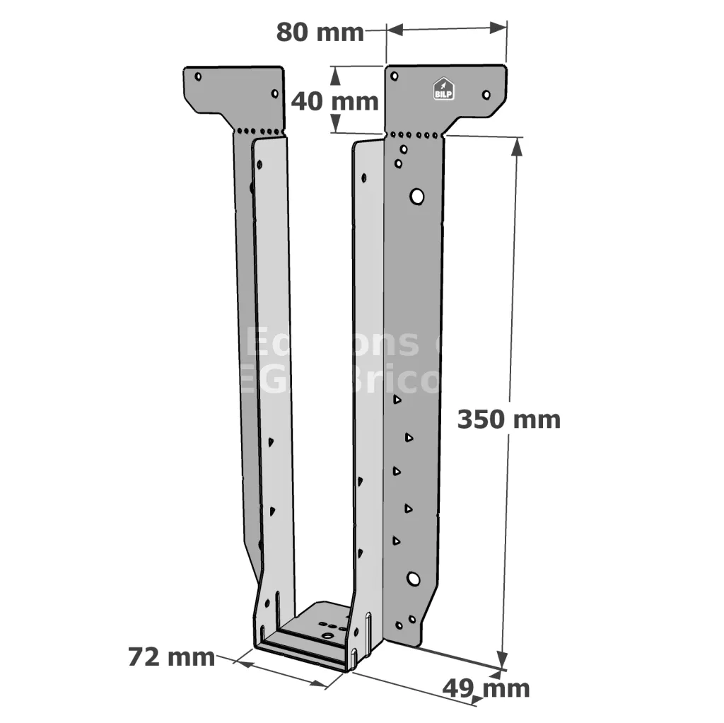 - Étrier fourni avec ses brides supérieures droites, pliables sur chantier afin de s’adapter à toutes les hauteurs de solives,