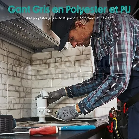 Gants de travail taille S - couleur : gris - Cdt : paire - Réf. B0BPX5X2WL