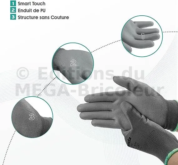 - Les gants ANDANDA ne sont pas recommandées pour les travaux lourds et les conditions huileuses/humides.
