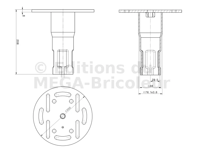 - Embout circulaire : L’embout circulaire peut être conçu pour s’adapter à une structure particulière, pour recevoir la base d’une vis ou pour faciliter la fixation d’autres composants.