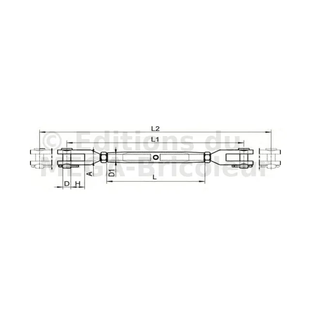 - Orientation spécifique : si les deux fourches sont fixes, cela peut indiquer une orientation prédéterminée du tendeur, ce qui pourrait être utile dans des applications nécessitant une direction de tension spécifique.