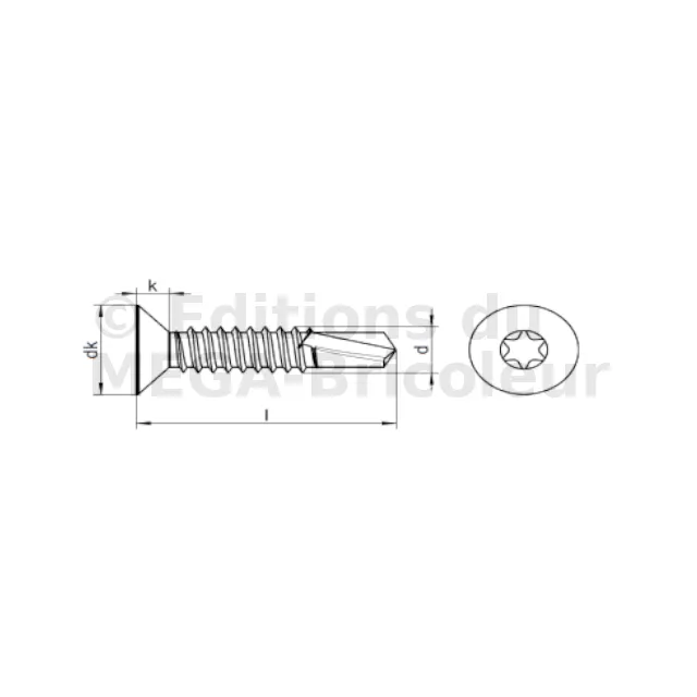 six lobes internes, avec filetage de vis à tôle