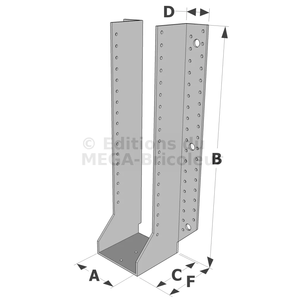 Les sabots GSE en acier galvanisé offrent une flexibilité grâce à des largeurs au choix selon les plages indiquées. Cette caractéristique permet de s’adapter parfaitement aux dimensions spécifiques des éléments de construction, garantissant une compatibilité optimale et une fixation stable.