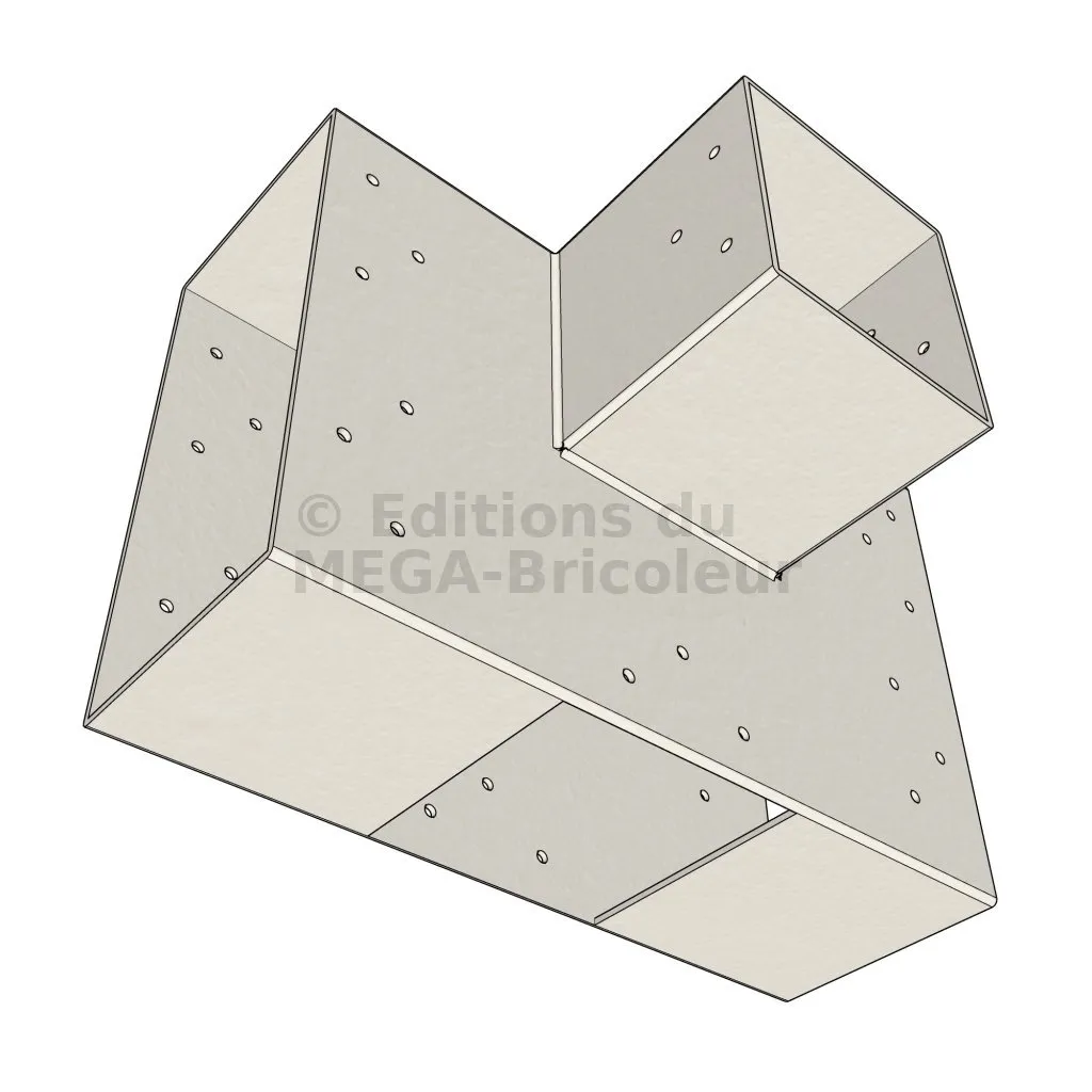 Il sert à raccorder une grosse poutre 240x120mm perpendiculairement à une poutre 120x120mm, le tout étant supporté par un poteau vertical 120x120 mm.