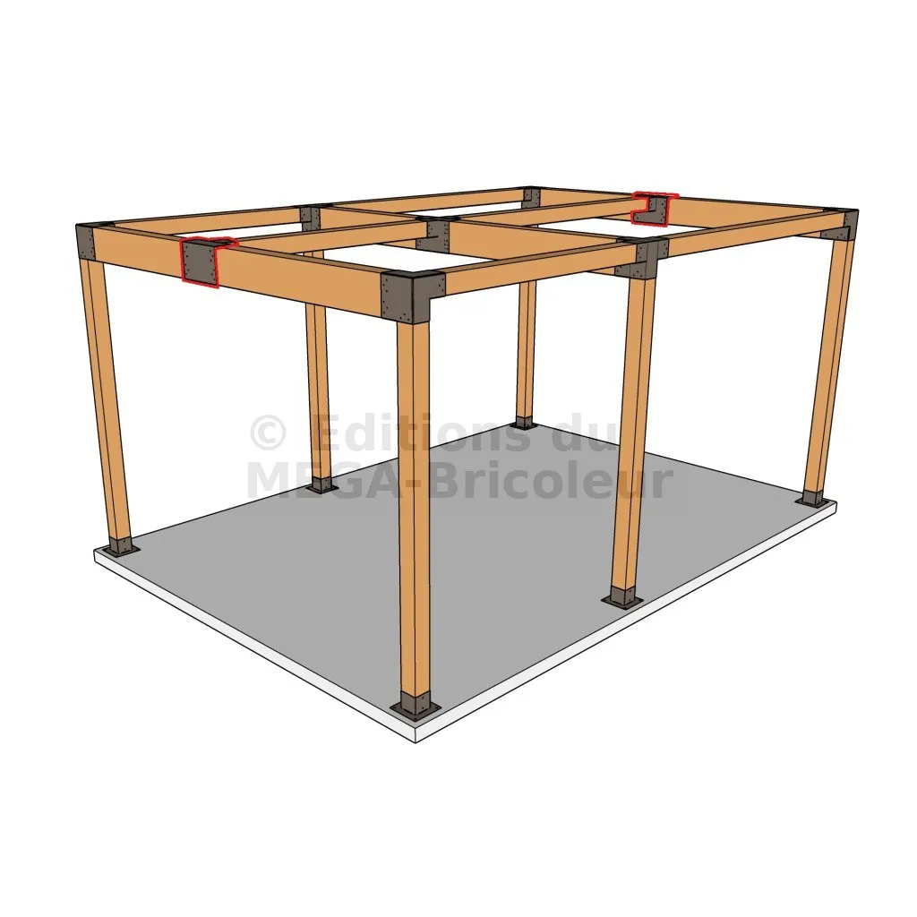 Il sert à raccorder une grosse poutre 240x120mm perpendiculairement à une poutre 120x120mm, le tout étant supporté par un poteau vertical 120x120 mm.