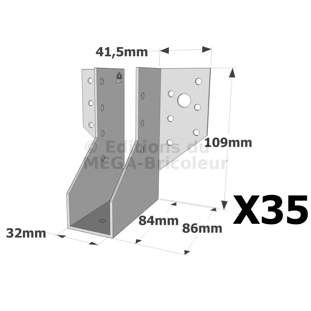 - Robustesse et épaisseur : Fabriqués en acier galvanisé, ces sabots à ailes extérieures classiques sont extrêmement résistants à la corrosion et offrent une épaisseur adaptée pour supporter des charges lourdes.