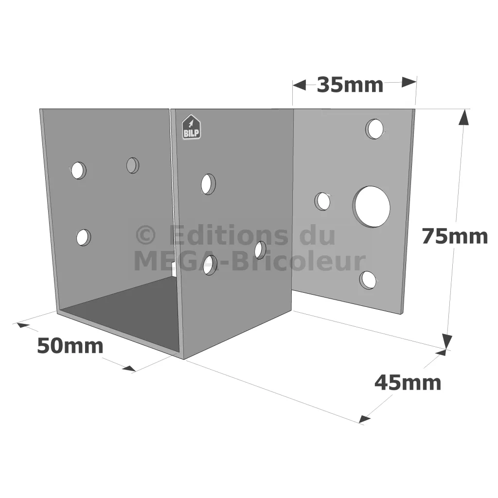 3. Ajuster le sabot par rapport aux tracés : le sabot doit être légèrement plus ouvert en haut que en bas pour faciliter l’installation de la poutre portée,