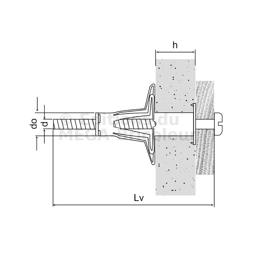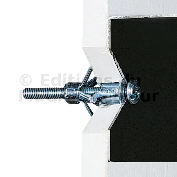 La cheville métallique à expansion TMC avec vis pas métrique prémontée, permet la fixation d’éléments sur plaque de plâtre ou cloison sèche, ou tout support creux dont la cavité correspond aux dimensions de la cheville.