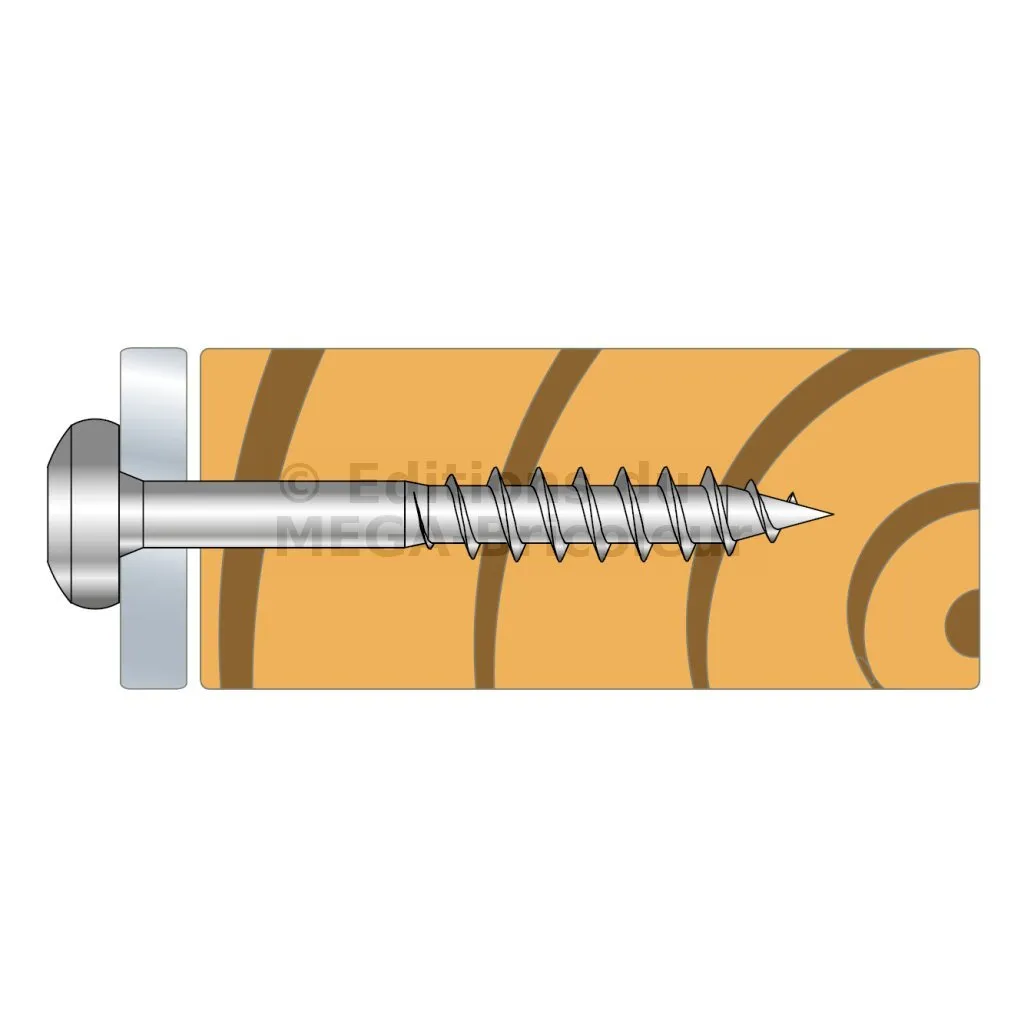Vis bois tête bombée (fixation d’élément ACIER sur BOIS) - 4.0x30mm - INOX A2 - Réf. 77923