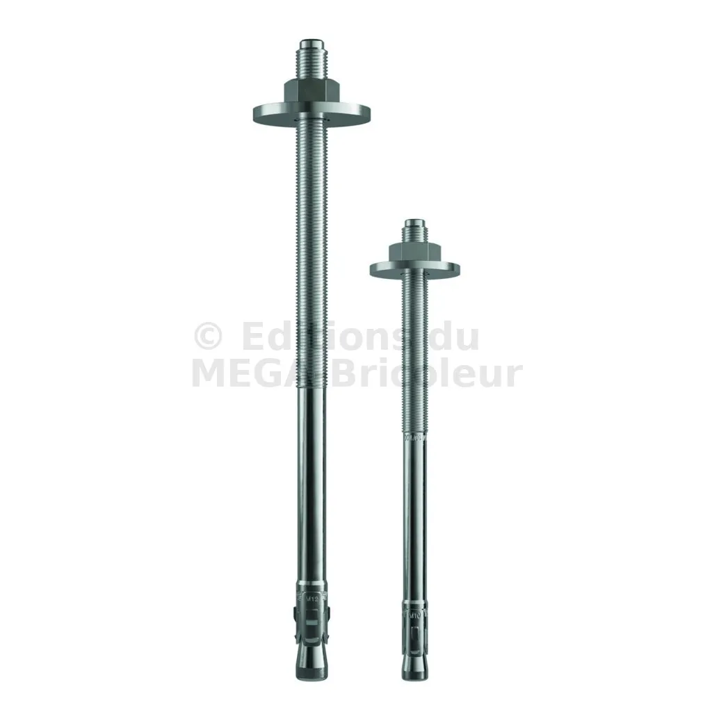 - Pose simple et rapide : écrou et rondelle prémontés et profondeur d’ancrage réduit ; Ø du filetage = Ø du perçage,