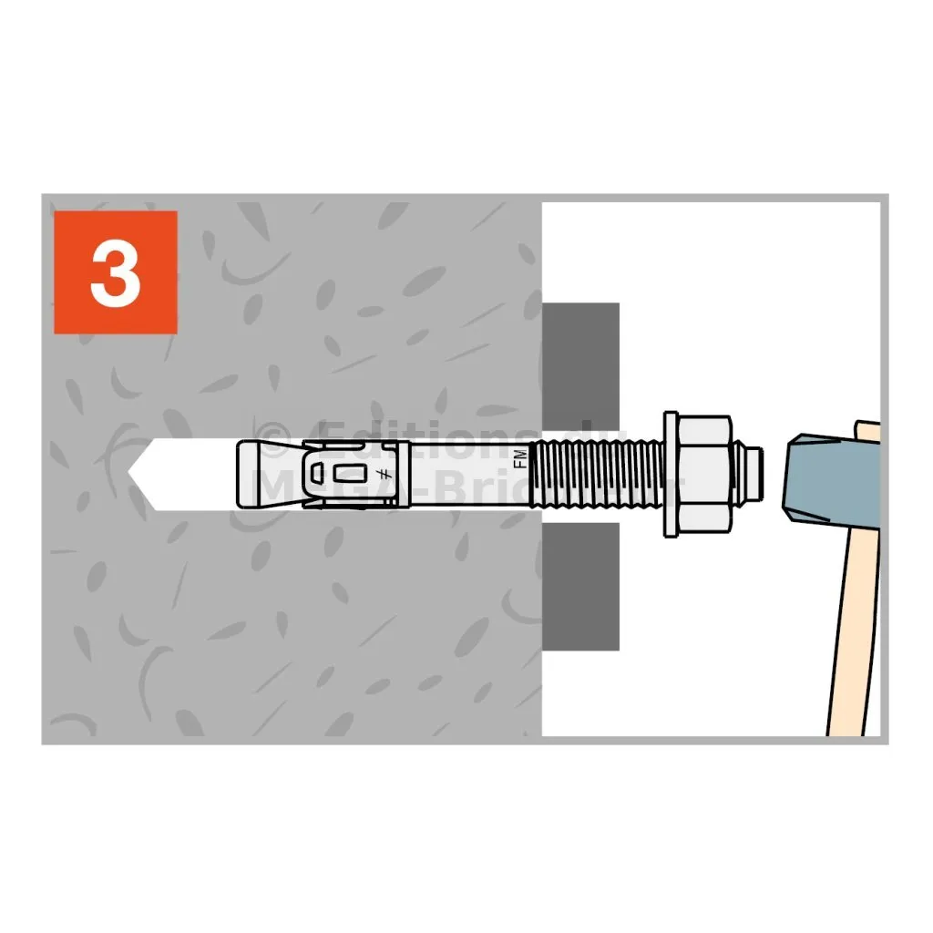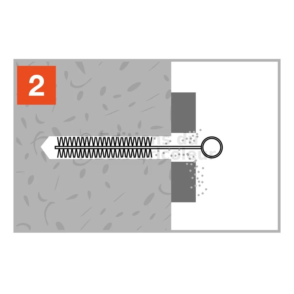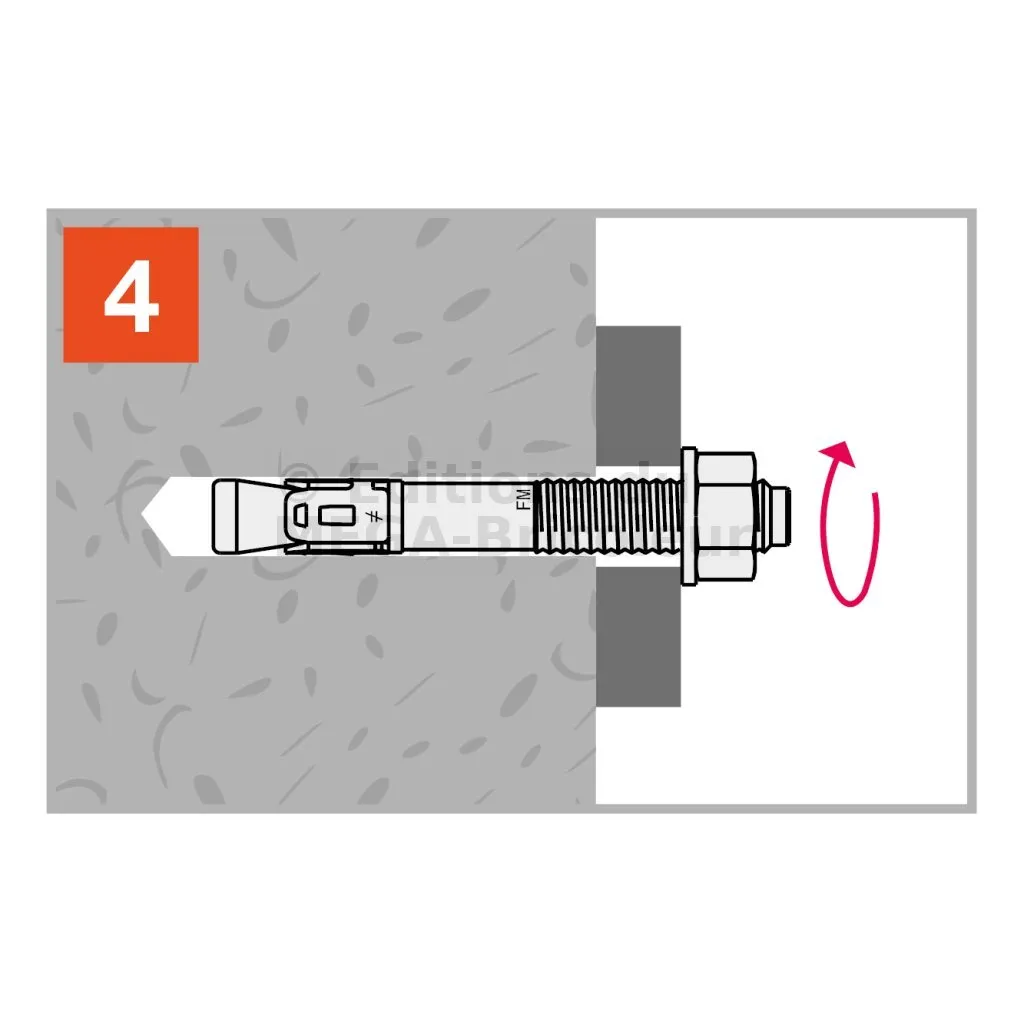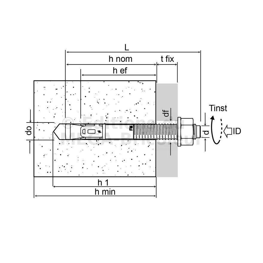 - Pose simple et rapide : écrou et rondelle prémontés et profondeur d’ancrage réduit ; Ø du filetage = Ø du perçage,