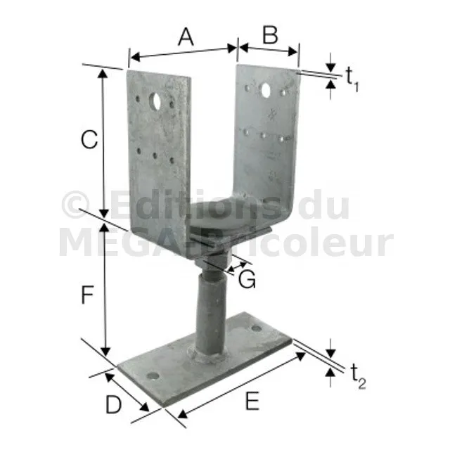 Pieds de poteau en U - réglable en LARGEUR ET HAUTEUR
