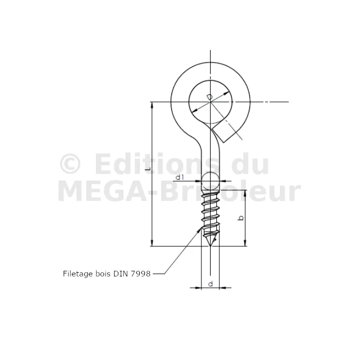 Piton fermé à filetage bois - Réf. 07054507002