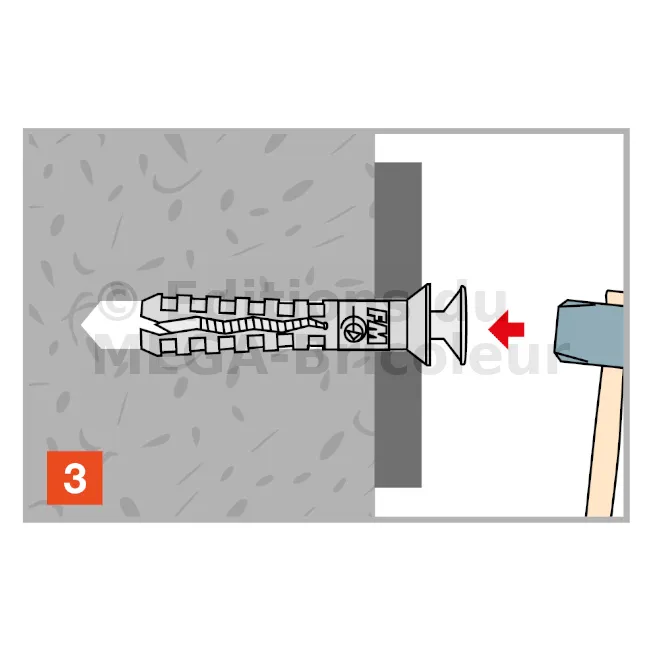 La cheville à frapper à colerette fraisée TSS convient pour la fixation rapide d’éléments légers sur supports divers.