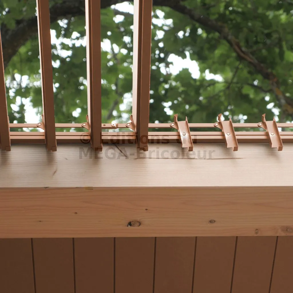 Les mécanismes constituent la base du SUNDIY. Ils permettent de couvrir une hauteur (ou profondeur) de 47,5cm, et jusqu’à une largeur de 100cm (conseillé) avec des lames en bois, ou 200cm avec des lames aluminium.