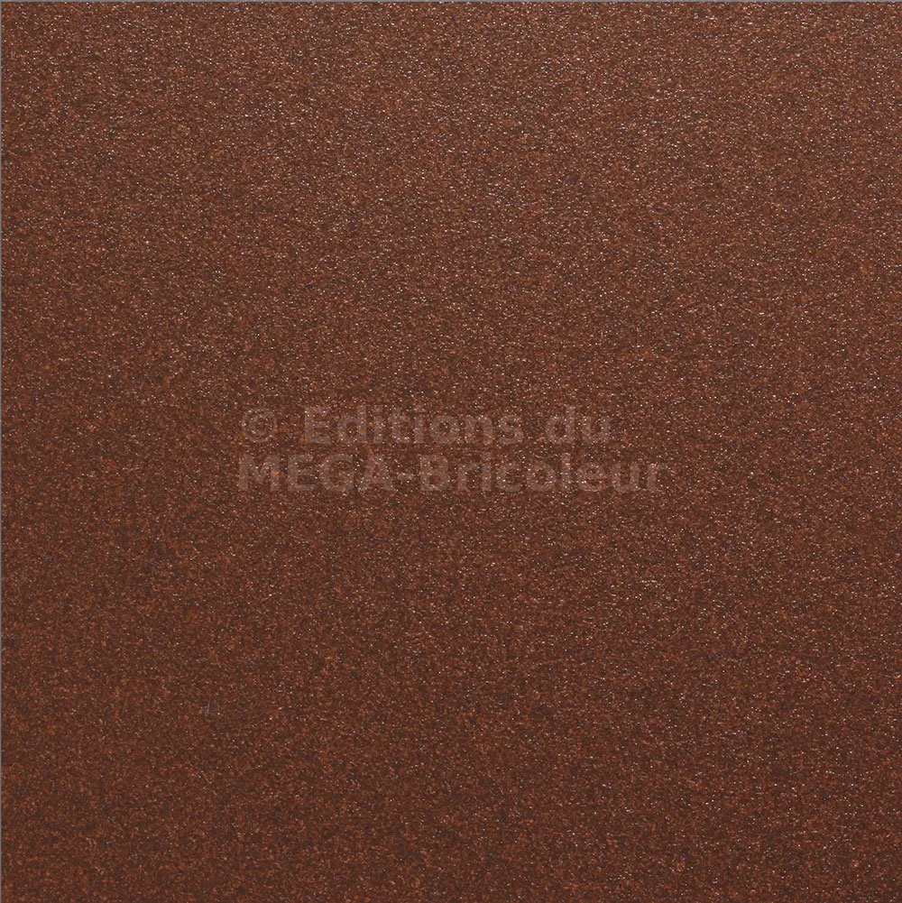 Effet corten (rouille), texturé pour plus de réalisme. Coloris évoquant aussi un bois exotique.