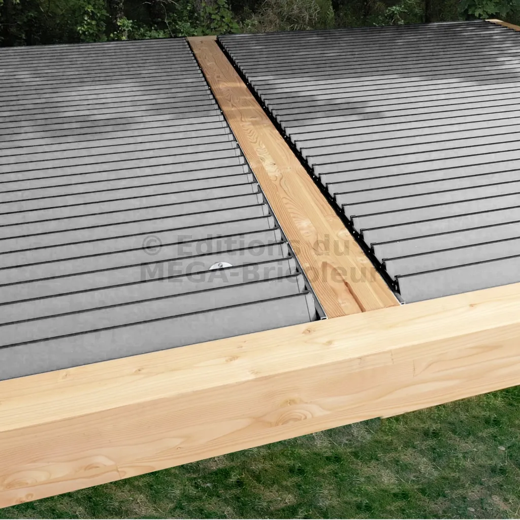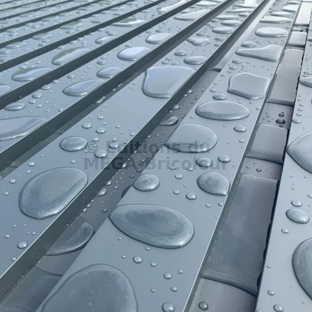 L’eau est collectée dans la rigole intégrée à la lame. Sous l’effet de la gravité, elle s’écoule ensuite de part et d’autre à chaque extrémité de la lame. Si vous recherchez une étanchéité totale, nous vous conseillons d’ajouter des chenaux qui viendront récupérer l’eau à chaque extrémité et la rediriger vers l’extérieur.
