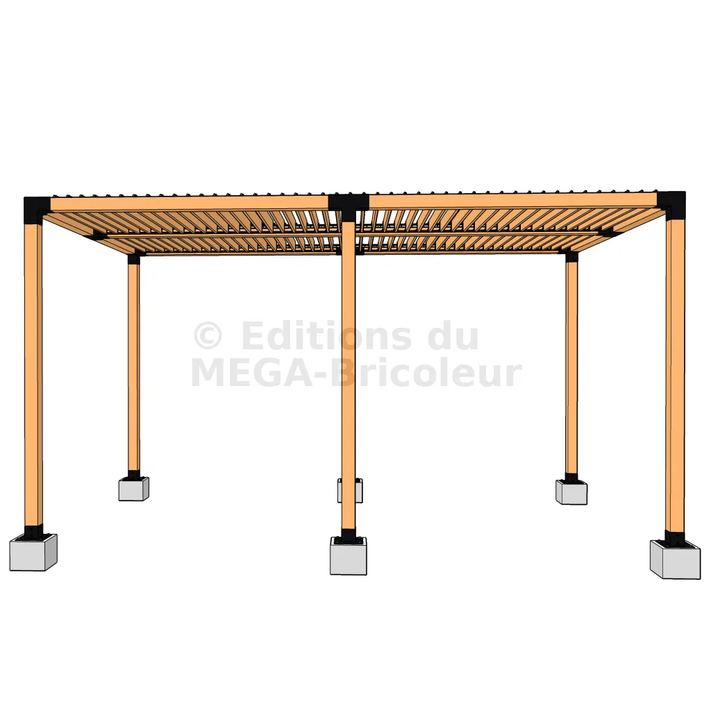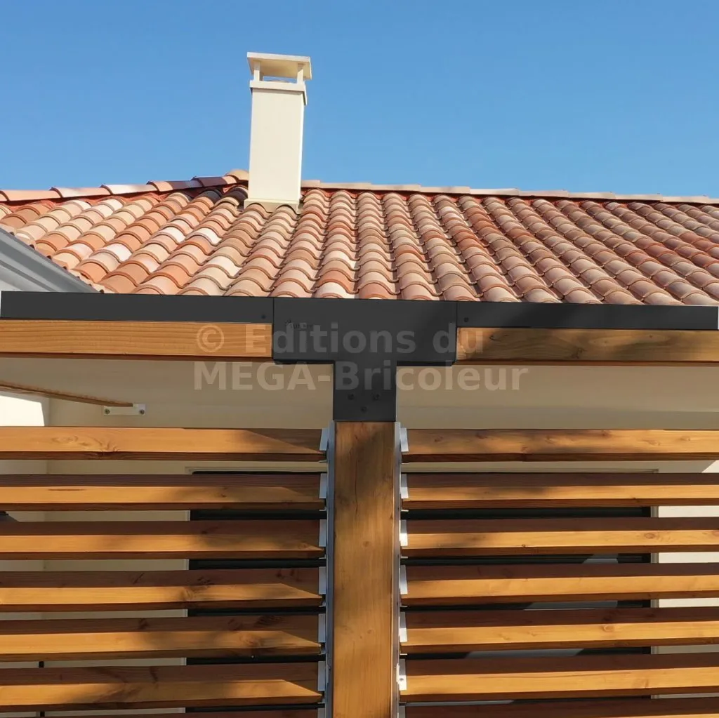 Il permet également la connexion d’une longue poutre de 90x90mm à un poteau intermédiaire de 90x90mm.