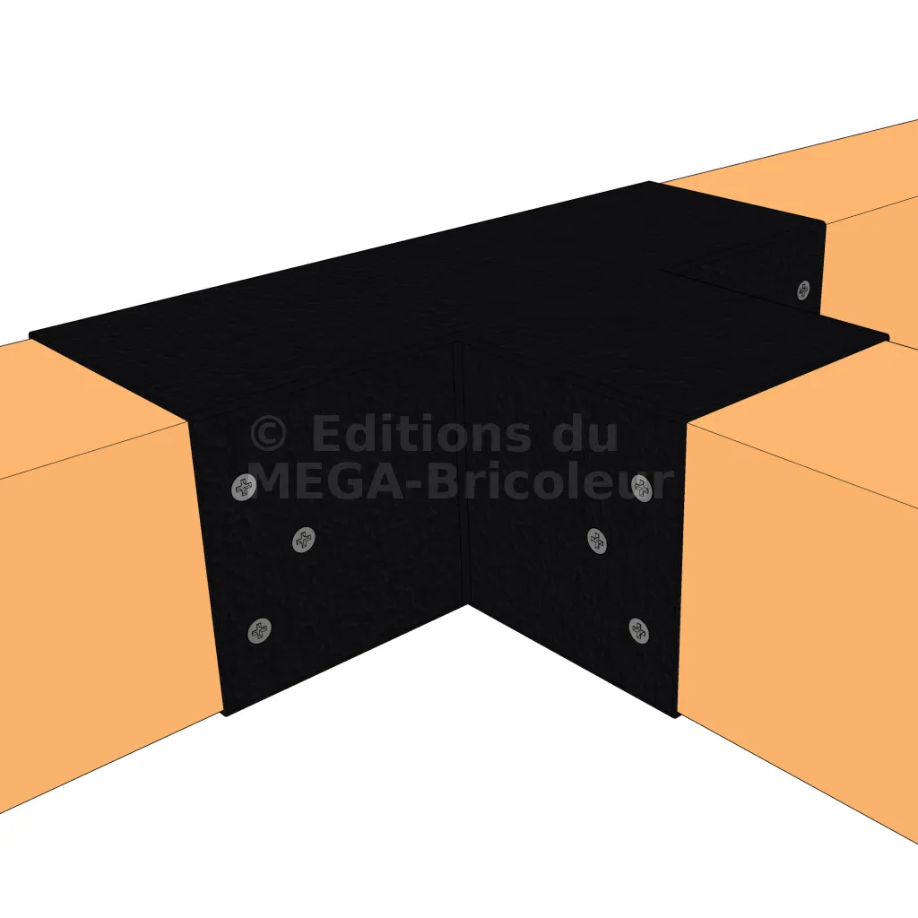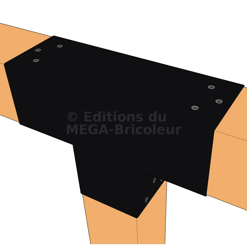 Il sert à raccorder une poutre de 90x90mm perpendiculairement à une autre poutre de 90x90mm, SANS être soutenu par un poteau vertical.