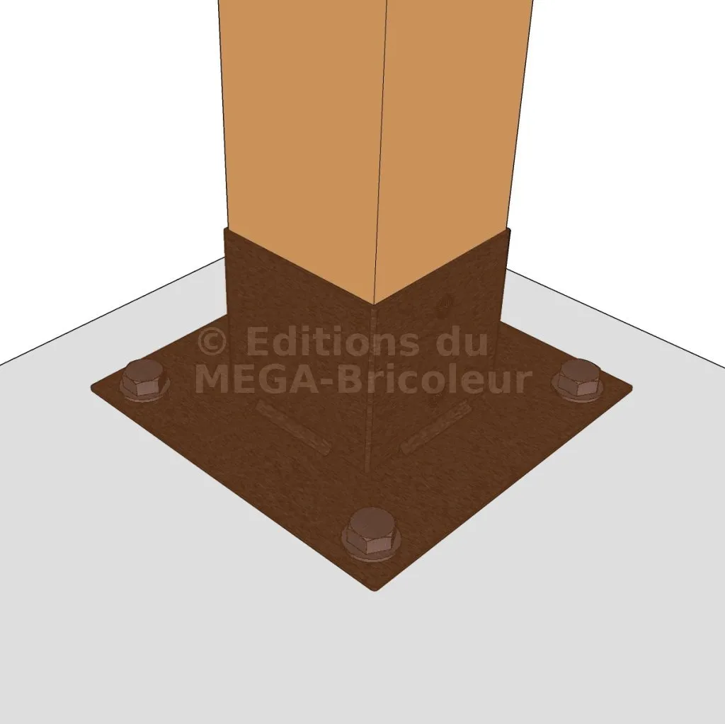 Il permet la fixation des poteaux sur une dalle ou un plot en béton.