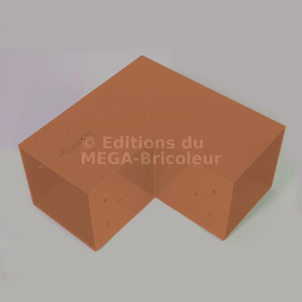 Il est utilisé dans un angle extérieur. Ce connecteur va permettre de raccorder une grosse poutre 120x120mm perpendiculairement à une autre poutre ou à un poteau vertical 120x120mm.