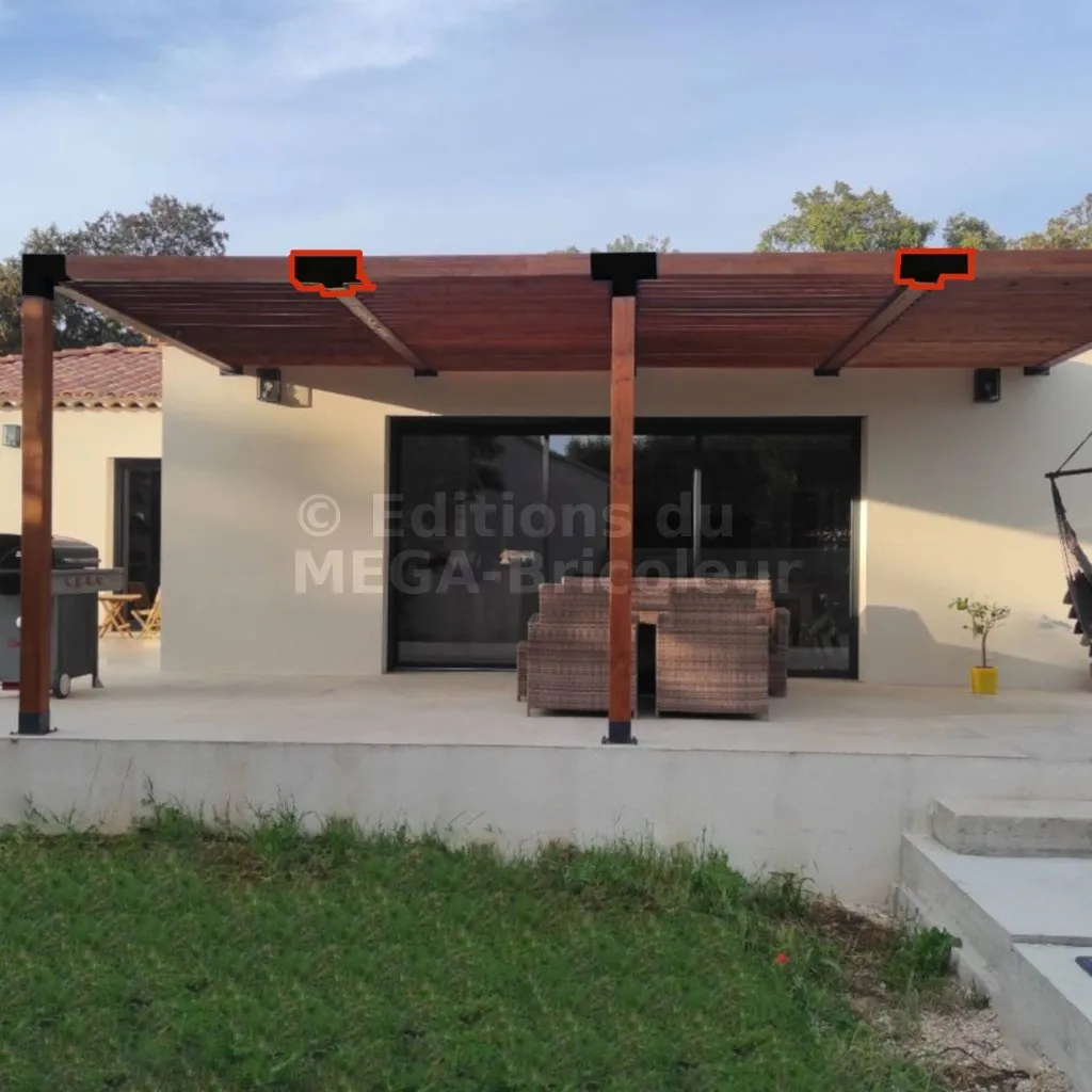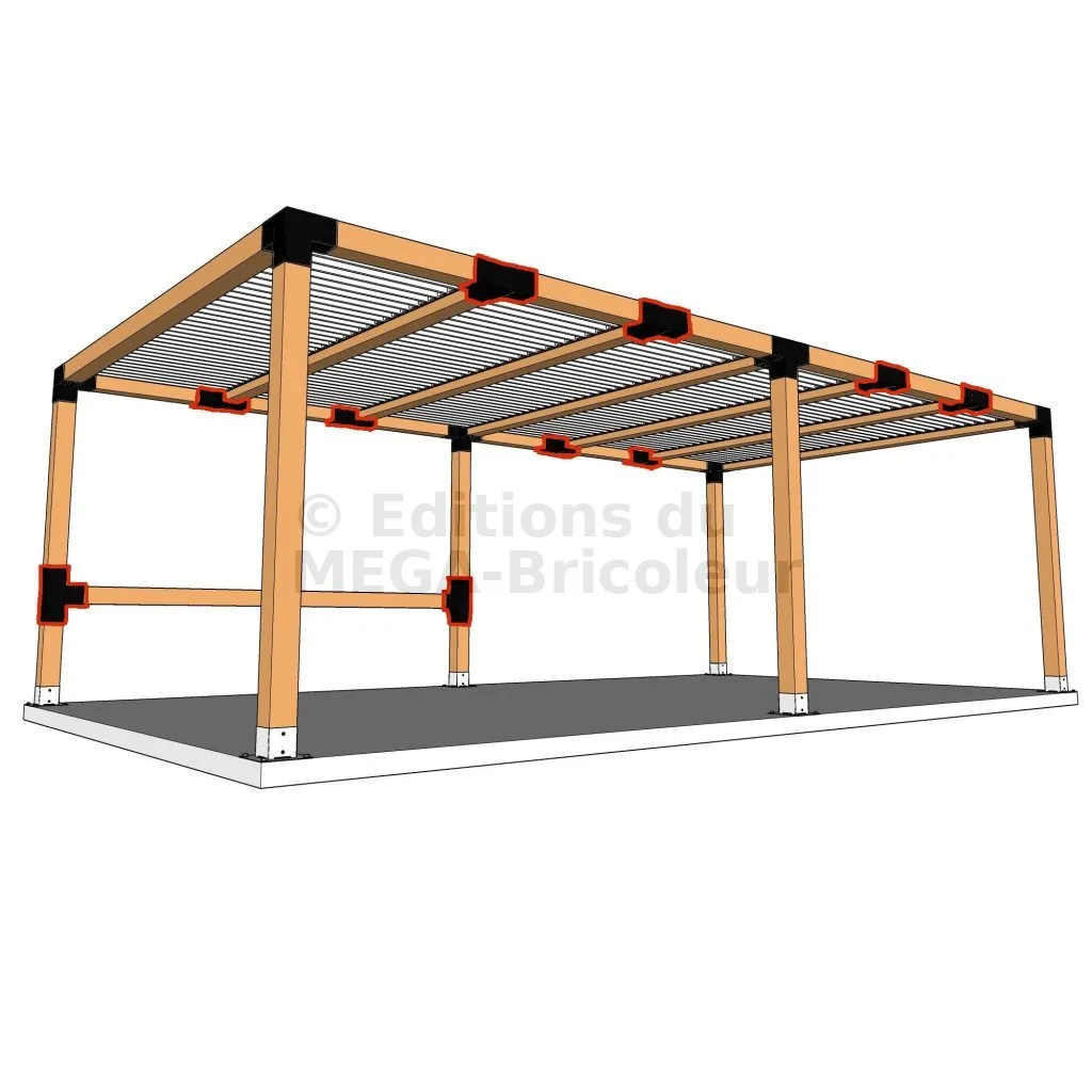 Il permet également la connexion d’une longue poutre de 120x120mm à un poteau intermédiaire de 120x120mm.