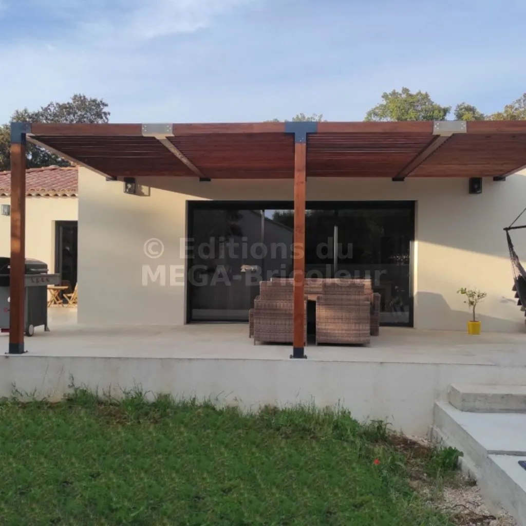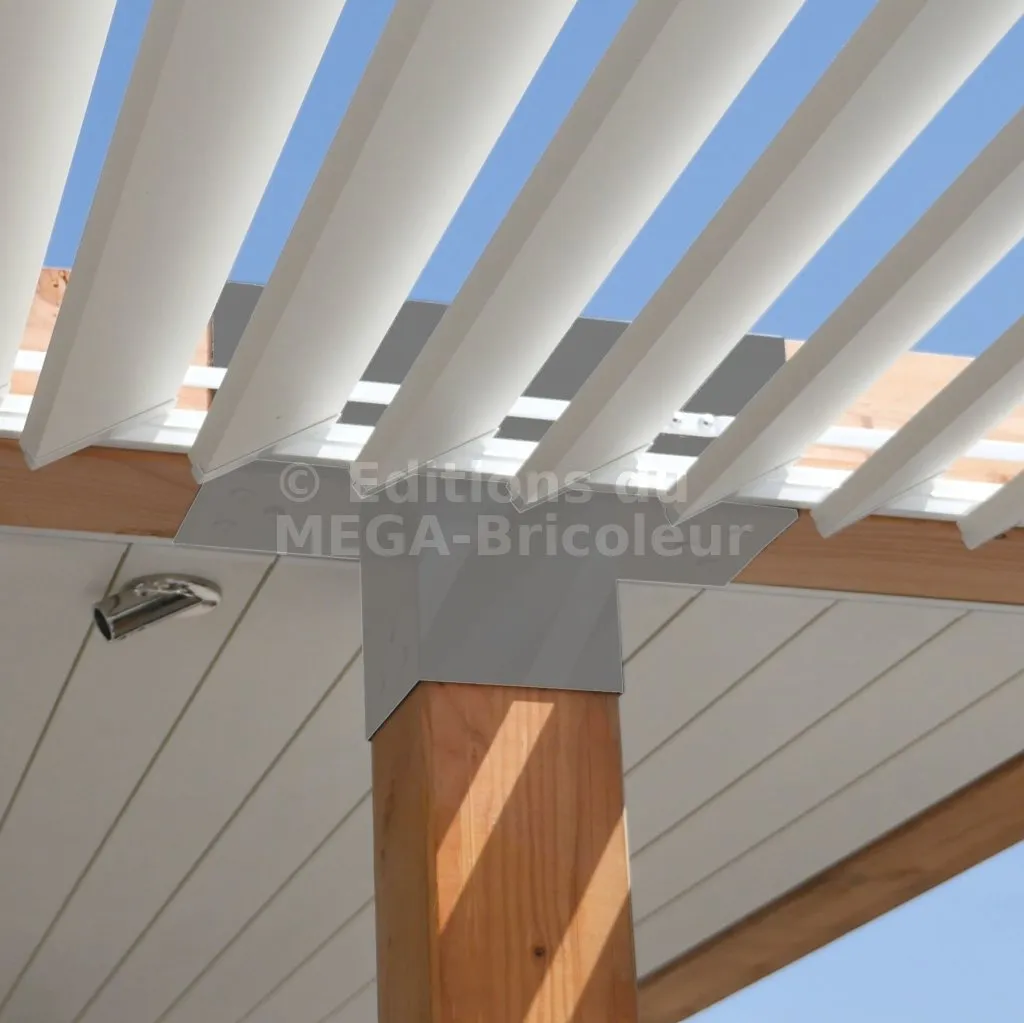 Il permet également la connexion d’une longue poutre de 120x120mm à un poteau intermédiaire de 120x120mm.