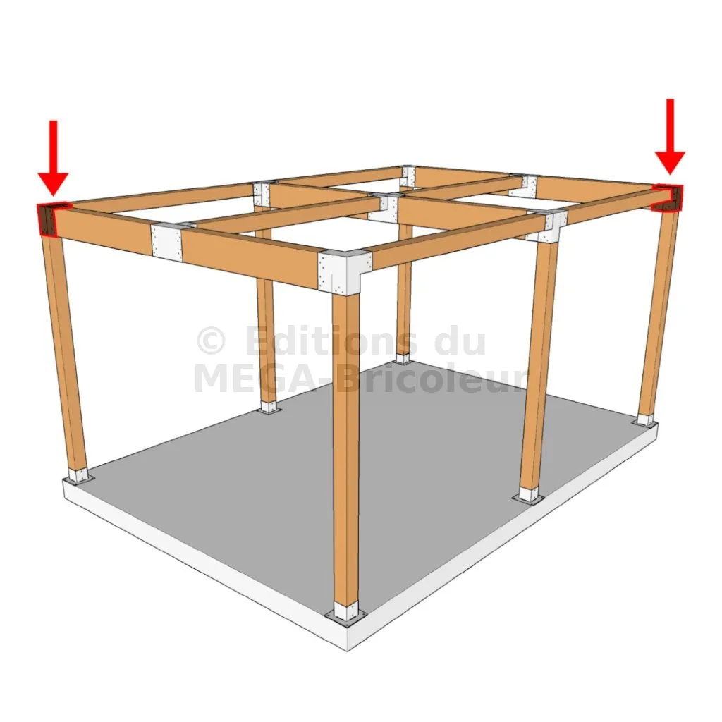 Il est utilisé dans un angle extérieur. Ce connecteur va permettre de raccorder une grosse poutre 240x120mm perpendiculairement à une poutre 120x120mm, le tout étant supporté par un poteau vertical 120x120mm.