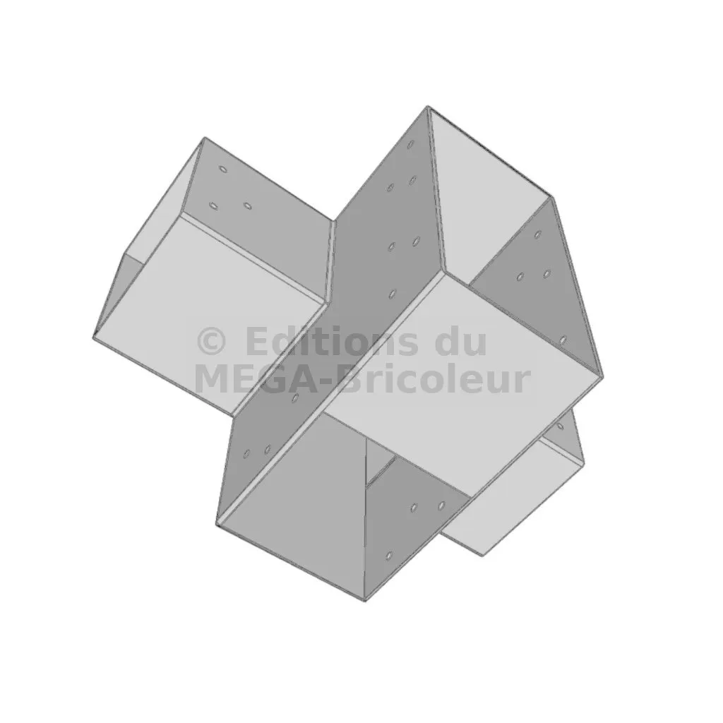 Il permet de raccorder deux poutres 120x120mm perpendiculairement à une grosse poutre 240x120mm, le tout étant supporté par un poteau vertical 120x120mm.