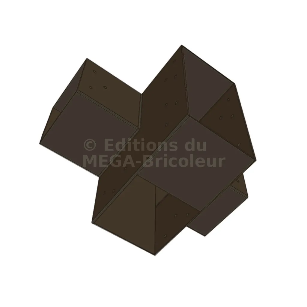 Il permet de raccorder deux poutres 120x120mm perpendiculairement à une grosse poutre 240x120mm, le tout étant supporté par un poteau vertical 120x120mm.