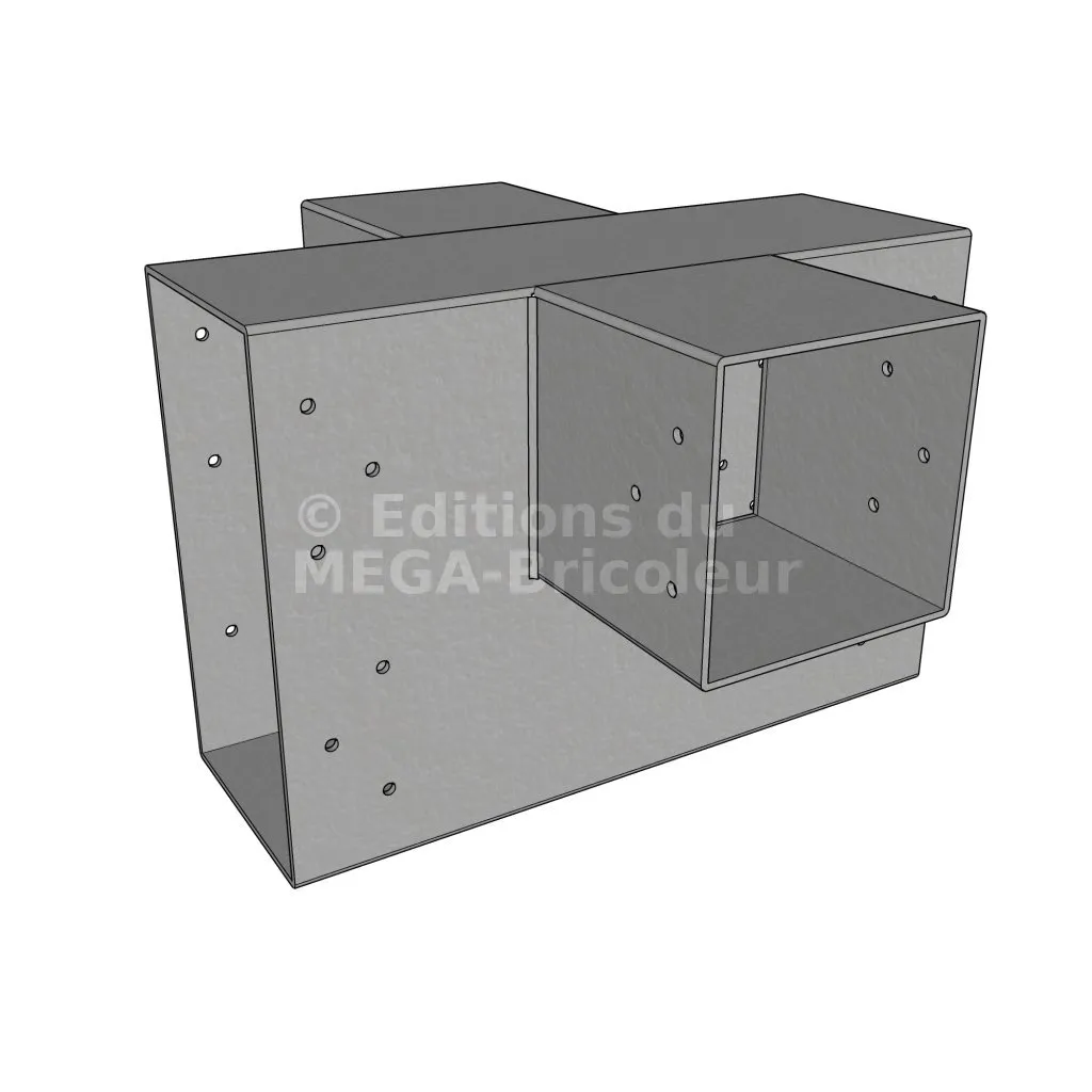 Il permet de raccorder deux poutres 120x120mm perpendiculairement à une grosse poutre 240x120mm, SANS être soutenu par un poteau vertical.