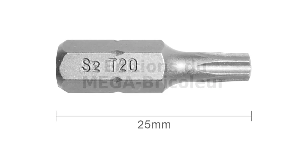 Embout T20 25mm (Qualité Professionnelle, Acier S2) - lot de 20 embouts - Réf. EmboutT20_20